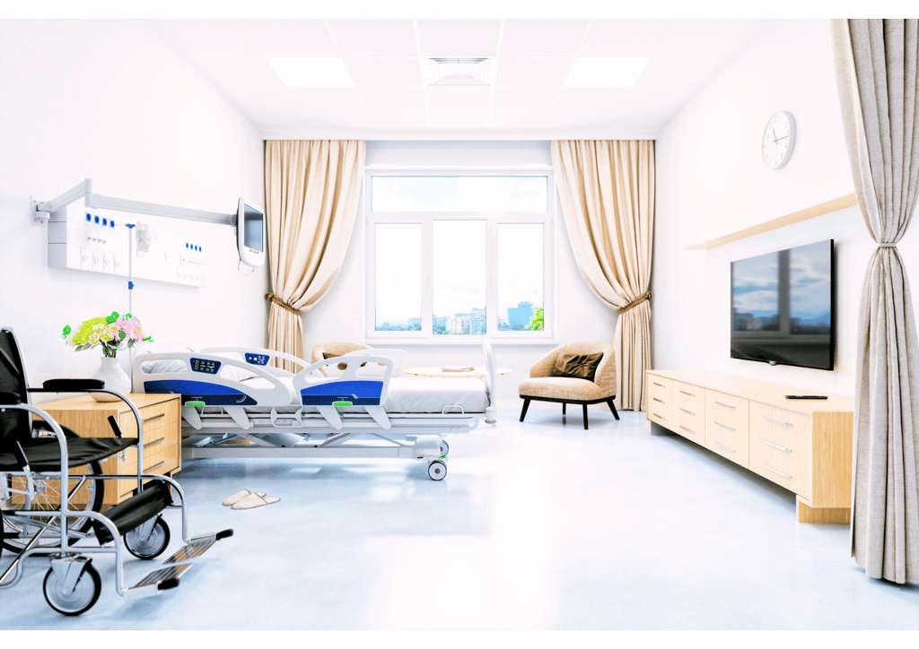 Hospital Integrated Stay – Rooms located within or near the medical facility for easy access to treatment.